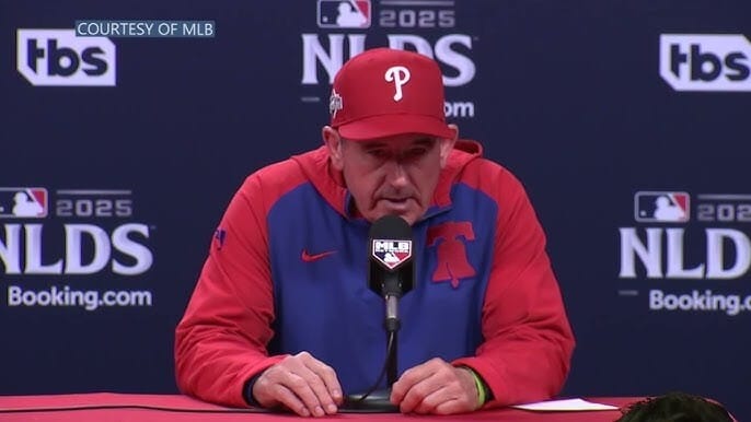 It’s (clearly) been a rough 2025 NLDS for Phillies manager Rob Thomson. Game 1’s bullpen decisions (having David Robertson come out for the seventh inning, allowing Matt Strahm to face both Mookie Betts and Teoscar Hernandez) were poor. And the ninth inning bunt in Game 2 was the worst decision of his managerial career—and potentially an era-defining moment.